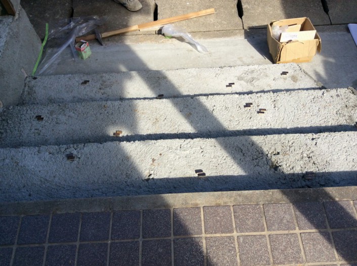 外観は手を加えませんが、玄関までのアプローチにはご家族参加でかわいいタイルが埋め込まれました。